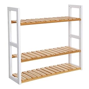 SONGMICS Bamboo Bathroom Shelf, 3-Tier Adjustable Plants Rack, Wall-Mounted or Stand, in The Living Room, Balcony, Kitchen, 5.9 x 23.6 x 21.3 Inches, Natural and Cloud White UBCB13WN