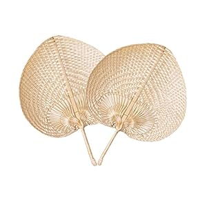 Fox Baby Natural Bamboo Raffia Hand Fans,Hand Weaving Fan for Summer Cooling Supplies Farmhouse Wall Decor Wedding Party Favors (2 Pcs)
