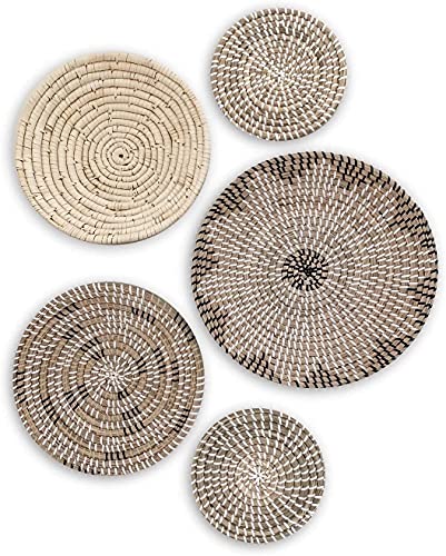 N THE NAMI COLLECTION TheNamiCollection Five Seagrass Baskets Set | Hanging, Decorative, Boho Styled Perfect For Trendy, All Natural Home Wall Decor | Handmade, Round, Woven