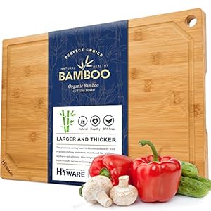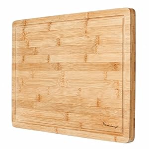 Hiware Extra Large Bamboo Cutting Board for Kitchen, Heavy Duty Wood Cutting Board with Juice Groove, 100% Organic Bamboo, Pre Oiled, 18″ x 12″