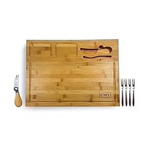 CMY Collections Charcuterie Board and Cheese Server – Bamboo Cheese Board and Knife Set, Reversible 2-IN-1 Serving Tray