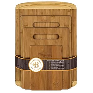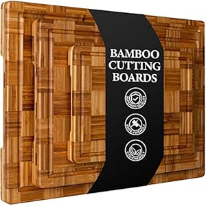 BambooMN Heavy Duty Premium Bamboo Cutting Board – 15.75″ x 11.75″ x 0.75″ – Grooved – 3 Pieces